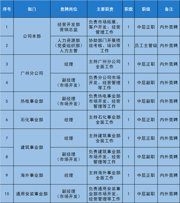 安裝公司管理崗位公開(kāi)競(jìng)聘公告